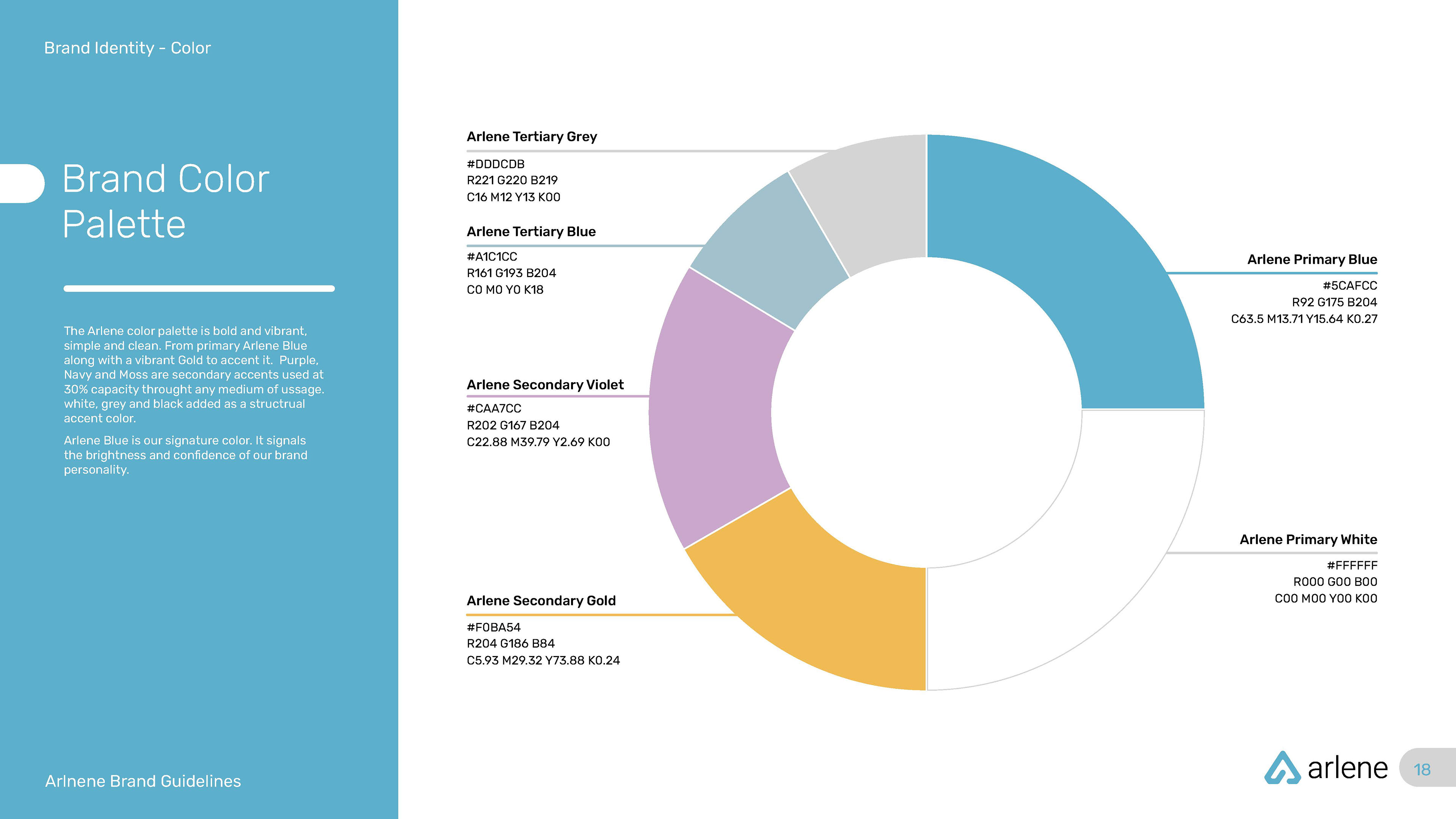 - Rebranded Arlene from the ground up (logo, visual identity, core brand system)