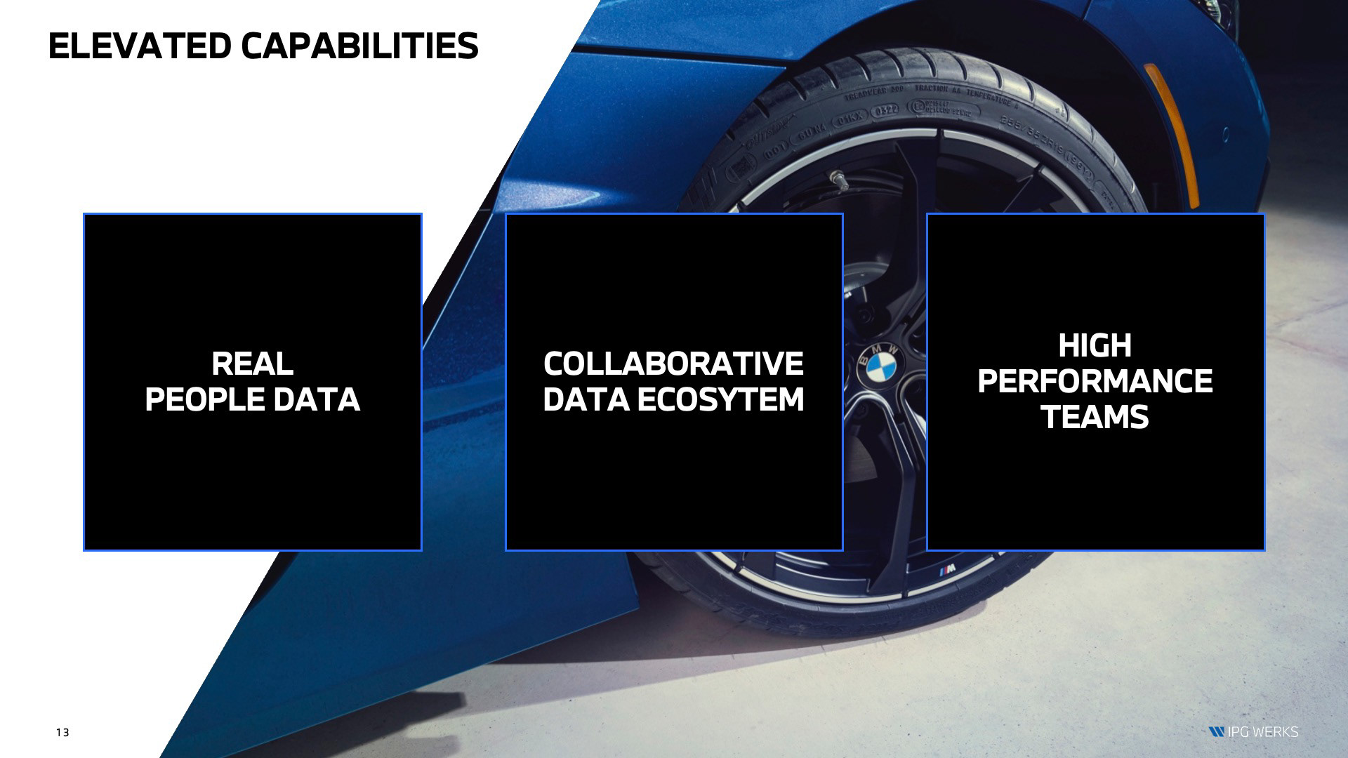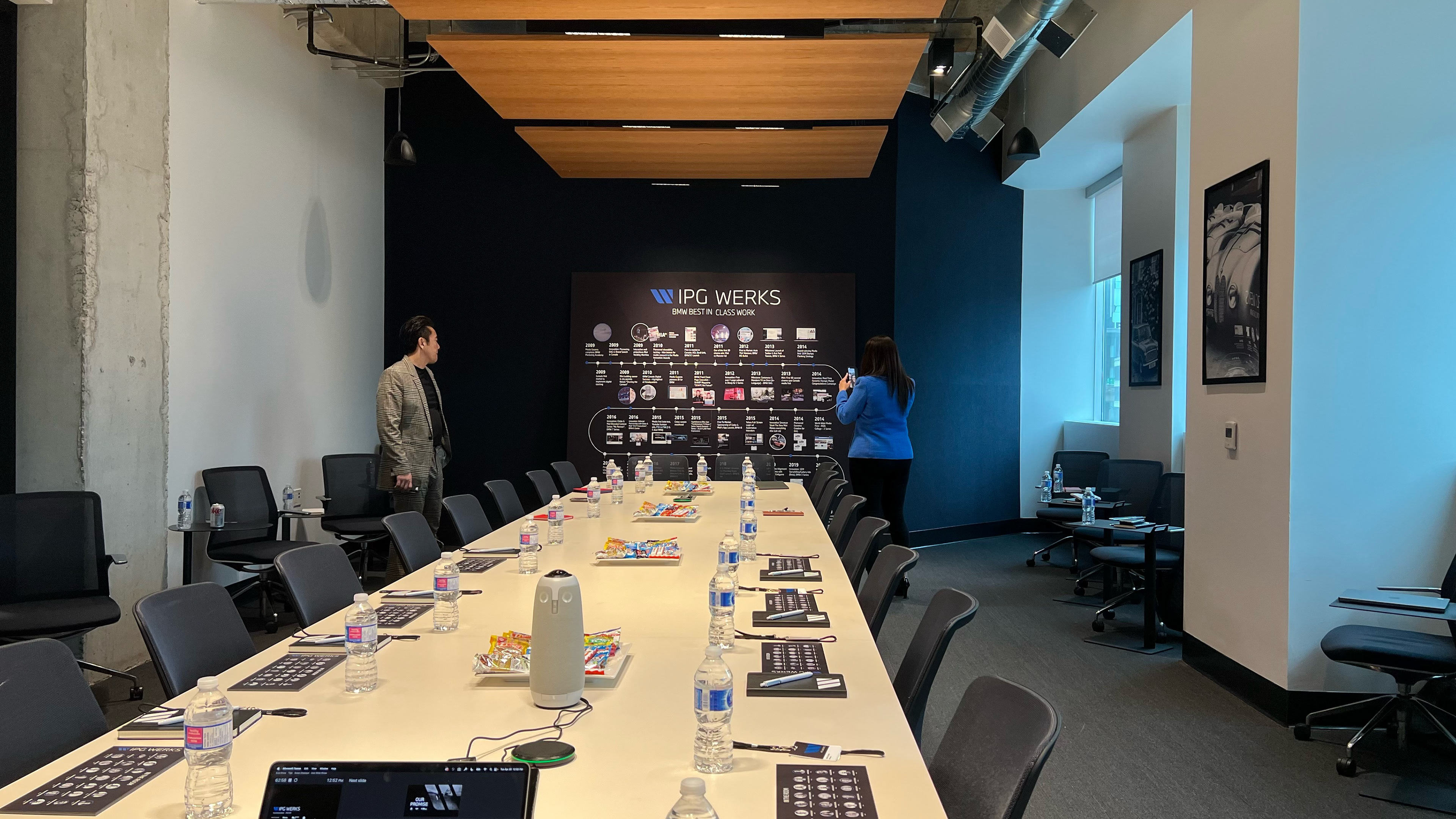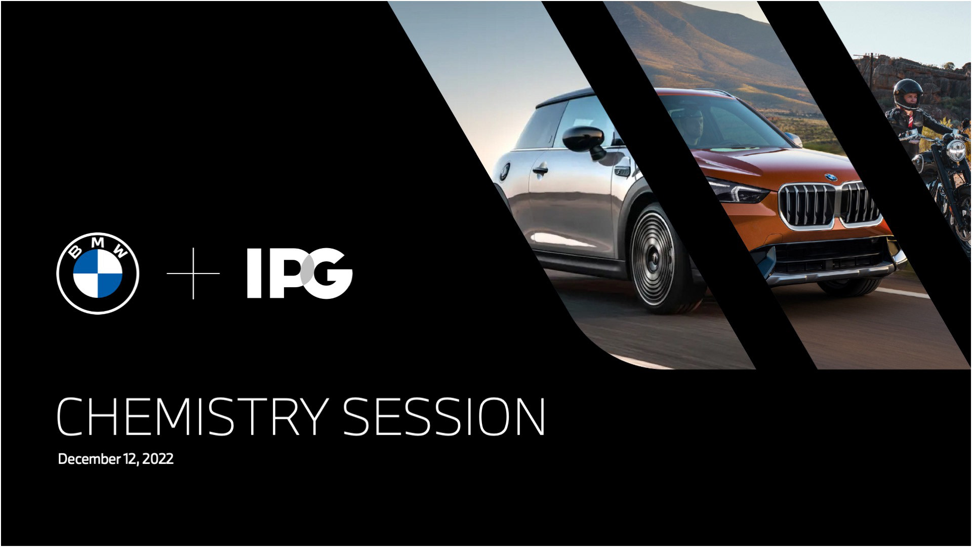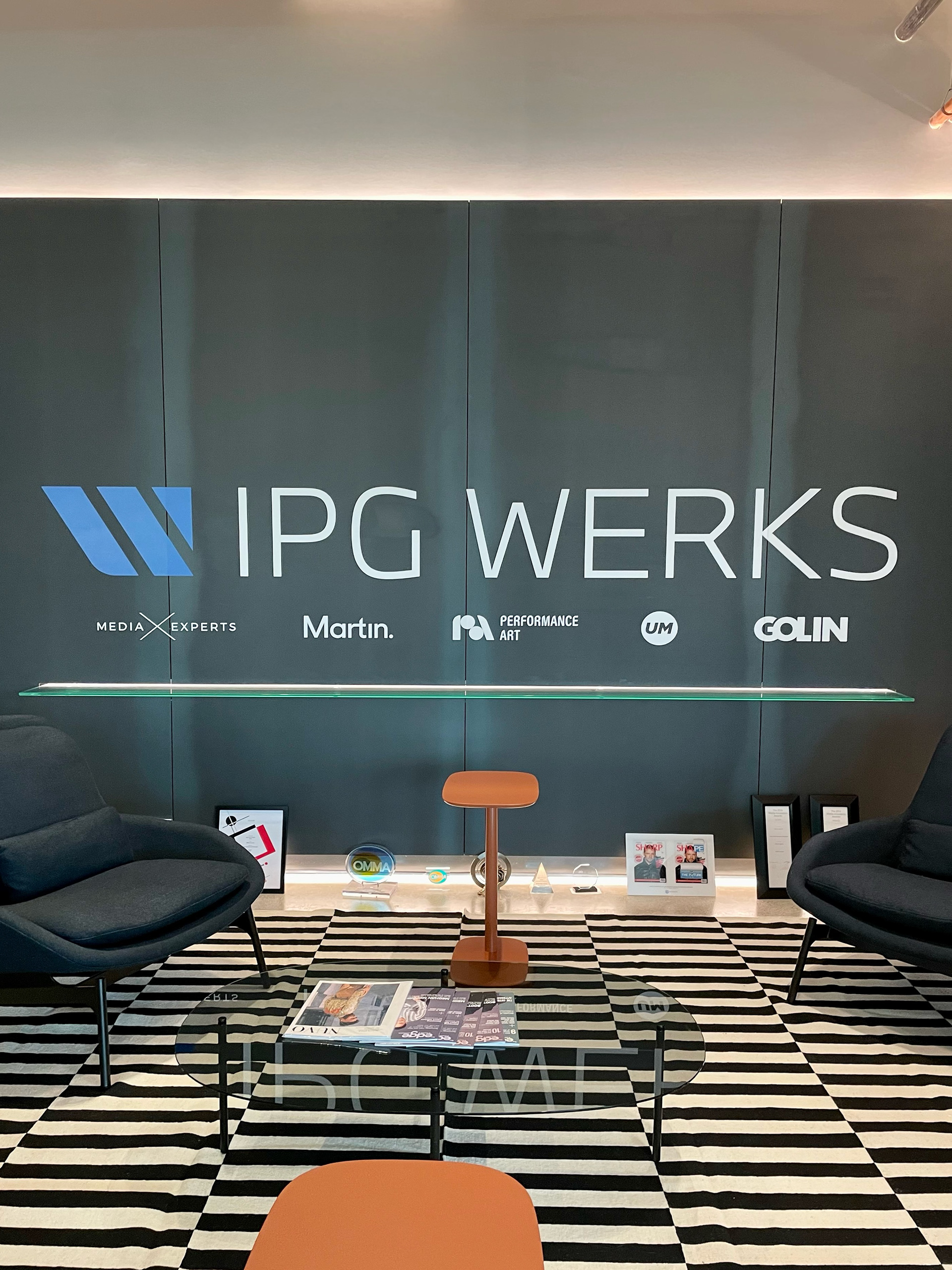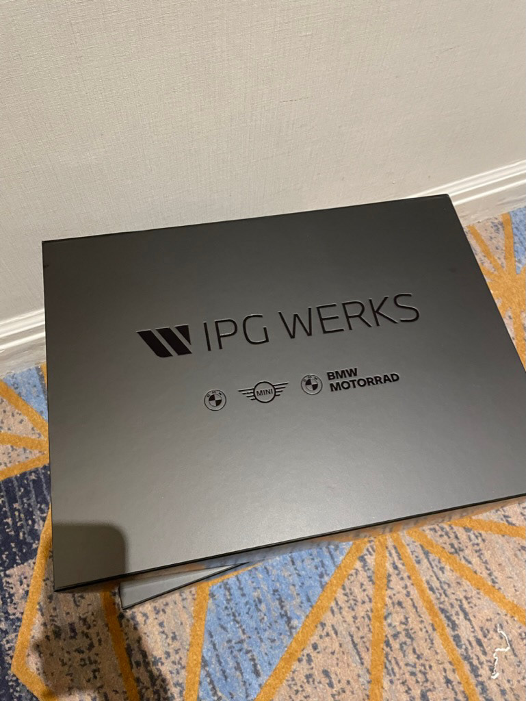 The pitch theater was designed as a fully immersive brand environment—every surface, entry point, and object calibrated to extend the BMW Group narrative beyond the deck. Branded elevator wraps, corridor graphics, and welcome screens created a cinematic arrival sequence; the lounge and meeting spaces were styled with a consistent IPG Werks visual language, from wall typography to furniture palettes. Details like custom notebooks, team cards, mugs, menu displays, curated hospitality, and signature cocktails turned the experience into a cohesive, premium ecosystem. Instead of a presentation, the pitch became a staged journey—one that demonstrated operational precision, craft, and the ability to activate BMW, MINI, and Motorrad with the same level of fidelity expected from a global agency partner.